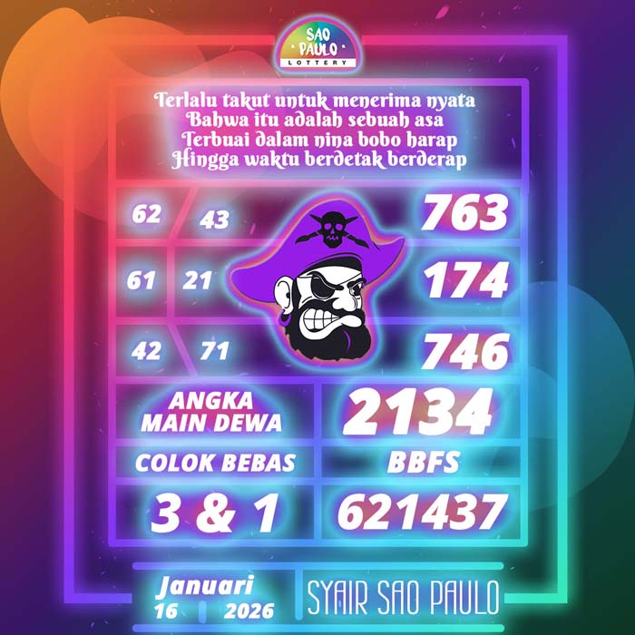 PREDIKSI TOGEL SAO PAULO HARI INI JUMAT 16 JANUARI 2026 adalah merupakan rumusan dan perhitungan ahli togel yang mempelajari semua data-data live draw SAO PAULO yang telah keluaran SAO PAULO, jitu togel prediksi mempelajari dan menyusun cara terbaik sehingga menghasilkan rumus togel jitu untuk membantu pecinta togel erek 88 agar segera mendap