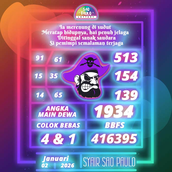 PREDIKSI TOGEL SAO PAULO HARI INI JUMAT 2 JANUARI 2026 adalah merupakan rumusan dan perhitungan ahli togel yang mempelajari semua data-data live draw SAO PAULO yang telah keluaran SAO PAULO, jitu togel prediksi mempelajari dan menyusun cara terbaik sehingga menghasilkan rumus togel jitu untuk membantu pecinta togel erek 88 agar segera mendap