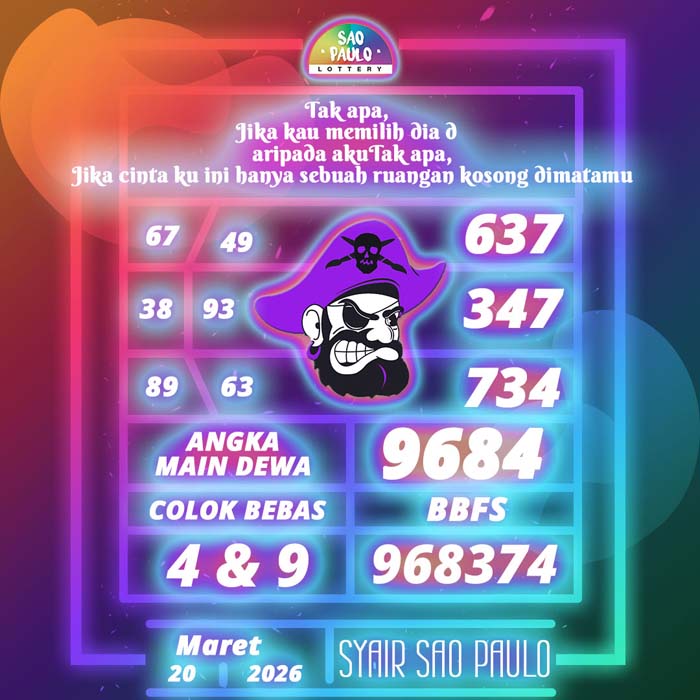 PREDIKSI TOGEL SAO PAULO HARI INI JUMAT 20 MARET 2026 adalah merupakan rumusan dan perhitungan ahli togel yang mempelajari semua data-data live draw SAO PAULO yang telah keluaran SAO PAULO, jitu togel prediksi mempelajari dan menyusun cara terbaik sehingga menghasilkan rumus togel jitu untuk membantu pecinta togel erek 88 agar segera mendap