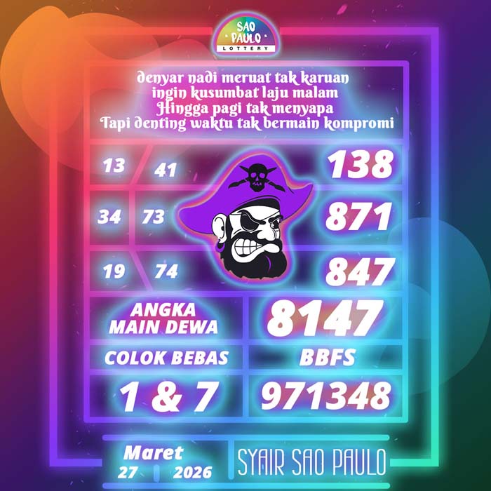 PREDIKSI TOGEL SAO PAULO HARI INI JUMAT 27 MARET 2026 adalah merupakan rumusan dan perhitungan ahli togel yang mempelajari semua data-data live draw SAO PAULO yang telah keluaran SAO PAULO, jitu togel prediksi mempelajari dan menyusun cara terbaik sehingga menghasilkan rumus togel jitu untuk membantu pecinta togel erek 88 agar segera mendap