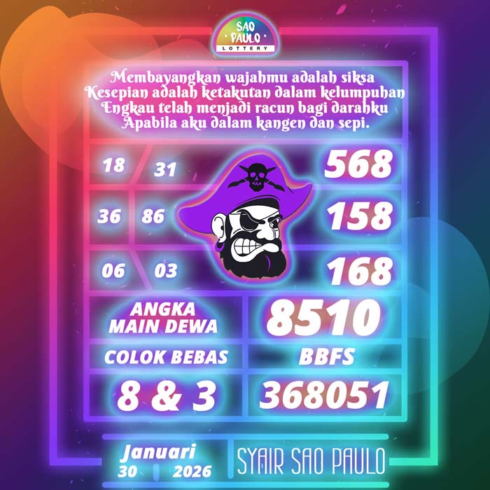 PREDIKSI TOGEL SAO PAULO HARI INI JUMAT 30 JANUARI 2026 adalah merupakan rumusan dan perhitungan ahli togel yang mempelajari semua data-data live draw SAO PAULO yang telah keluaran SAO PAULO, jitu togel prediksi mempelajari dan menyusun cara terbaik sehingga menghasilkan rumus togel jitu untuk membantu pecinta togel erek 88 agar segera mendap