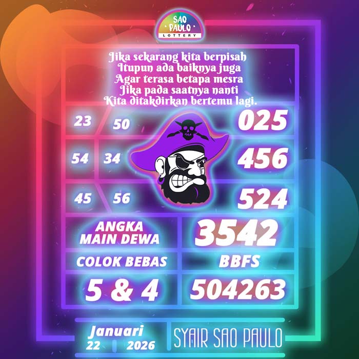 PREDIKSI TOGEL SAO PAULO HARI INI KAMIS 22 JANUARI 2026 adalah merupakan rumusan dan perhitungan ahli togel yang mempelajari semua data-data live draw SAO PAULO yang telah keluaran SAO PAULO, jitu togel prediksi mempelajari dan menyusun cara terbaik sehingga menghasilkan rumus togel jitu untuk membantu pecinta togel erek 88 agar segera mendapatkan jackpot. Untuk pecinta togel ketahu i stragegi jitu ini di rumuskan bocoran jitu karena telah kami buktikan sendiri sebelumnya sehingga prediksi yang kami berikan adalah prediksi prediksi totokita terbaik memperbesar peluang kemenangan dalam bermain toto SAO PAULO. PREDIKSI TOGEL SAO PAULO HARI INI mempelajari dan mengunakan prediksi prediksi angka togel memang memperbesar peluang jackpot syair angka, tetapi pecinta togel angka main hari ini tetap harus prediksi SAO PAULO 4d mengutamakan rumus togel hari ini dan firasat pecinta togel prediksi terjitu.