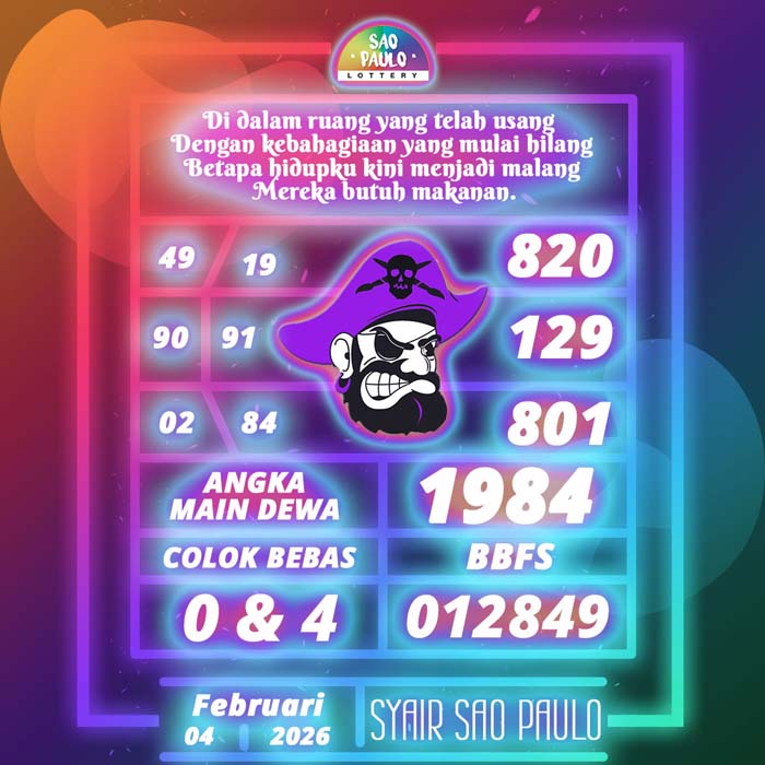 PREDIKSI TOGEL SAO PAULO HARI INI RABU 4 FEBRUARI 2026 adalah merupakan rumusan dan perhitungan ahli togel yang mempelajari semua data-data live draw SAO PAULO yang telah keluaran SAO PAULO, jitu togel prediksi mempelajari dan menyusun cara terbaik sehingga menghasilkan rumus togel jitu untuk membantu pecinta togel erek 88 agar segera mendapatkan jackpot. Untuk pecinta togel ketahu i stragegi jitu ini di rumuskan bocoran jitu karena telah kami buktikan sendiri sebelumnya sehingga prediksi yang kami berikan adalah prediksi prediksi totokita terbaik memperbesar peluang kemenangan dalam bermain toto SAO PAULO. PREDIKSI TOGEL SAO PAULO HARI INI mempelajari dan mengunakan prediksi prediksi angka togel memang memperbesar peluang jackpot syair angka, tetapi pecinta togel angka main hari ini tetap harus prediksi SAO PAULO 4d mengutamakan rumus togel hari ini dan firasat pecinta togel prediksi terjitu.