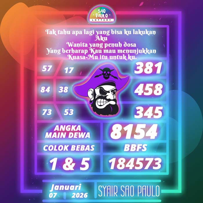 PREDIKSI TOGEL SAO PAULO HARI INI RABU 7 JANUARI 2026 adalah merupakan rumusan dan perhitungan ahli togel yang mempelajari semua data-data live draw SAO PAULO yang telah keluaran SAO PAULO, jitu togel prediksi mempelajari dan menyusun cara terbaik sehingga menghasilkan rumus togel jitu untuk membantu pecinta togel erek 88 agar segera mendapatkan jackpot. Untuk pecinta togel ketahu i stragegi jitu ini di rumuskan bocoran jitu karena telah kami buktikan sendiri sebelumnya sehingga prediksi yang kami berikan adalah prediksi prediksi totokita terbaik memperbesar peluang kemenangan dalam bermain toto SAO PAULO. PREDIKSI TOGEL SAO PAULO HARI INI mempelajari dan mengunakan prediksi prediksi angka togel memang memperbesar peluang jackpot syair angka, tetapi pecinta togel angka main hari ini tetap harus prediksi SAO PAULO 4d mengutamakan rumus togel hari ini dan firasat pecinta togel prediksi terjitu.