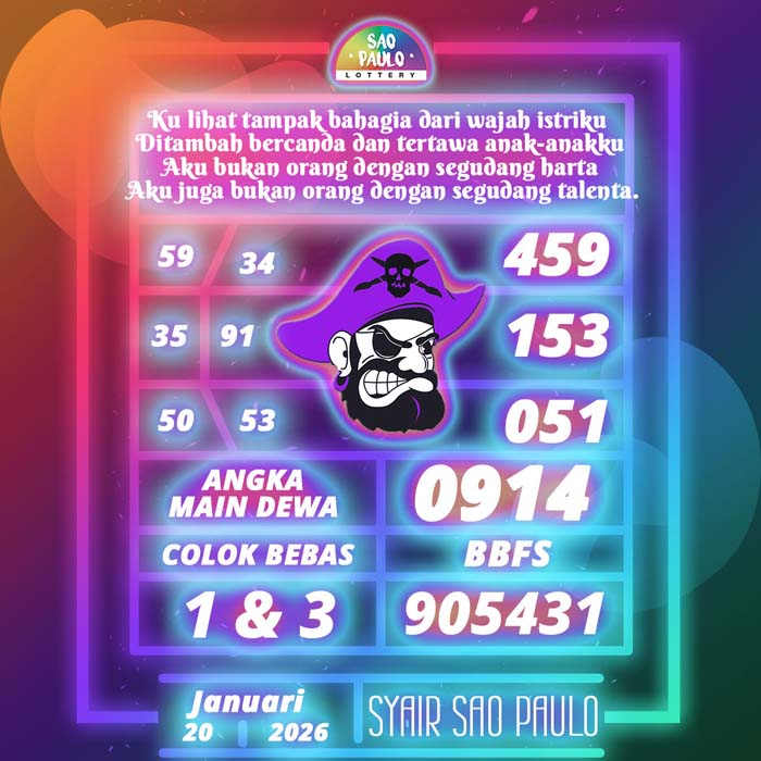 PREDIKSI TOGEL SAO PAULO HARI INI SELASA 20 JANUARI 2026 adalah merupakan rumusan dan perhitungan ahli togel yang mempelajari semua data-data live draw SAO PAULO yang telah keluaran SAO PAULO, jitu togel prediksi mempelajari dan menyusun cara terbaik sehingga menghasilkan rumus togel jitu untuk membantu pecinta togel erek 88 agar segera mendapatkan jackpot. Untuk pecinta togel ketahu i stragegi jitu ini di rumuskan bocoran jitu karena telah kami buktikan sendiri sebelumnya sehingga prediksi yang kami berikan adalah prediksi prediksi totokita terbaik memperbesar peluang kemenangan dalam bermain toto SAO PAULO. PREDIKSI TOGEL SAO PAULO HARI INI mempelajari dan mengunakan prediksi prediksi angka togel memang memperbesar peluang jackpot syair angka, tetapi pecinta togel angka main hari ini tetap harus prediksi SAO PAULO 4d mengutamakan rumus togel hari ini dan firasat pecinta togel prediksi terjitu.