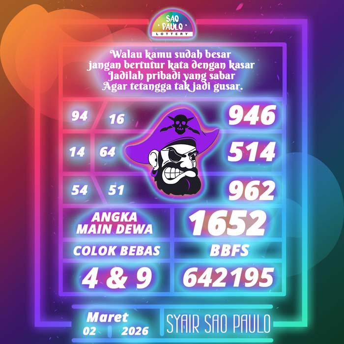PREDIKSI TOGEL SAO PAULO HARI INI SENIN 2 MARET 2026