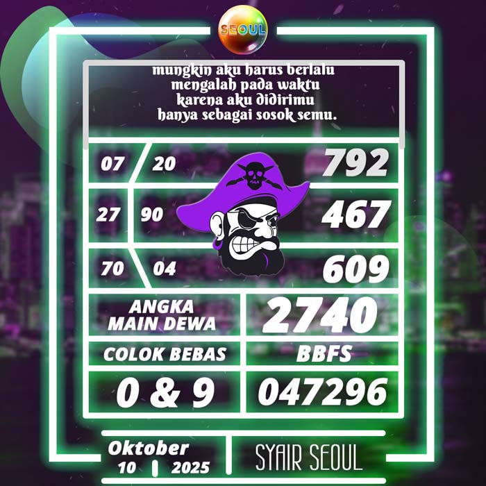 PREDIKSI TOGEL SEOUL HARI INI JUMAT 10 OKTOBER 2025 adalah merupakan rumusan dan perhitungan ahli togel yang mempelajari semua data-data live draw SEOUL yang telah keluaran SEOUL, jitu togel prediksi mempelajari dan menyusun cara terbaik sehingga menghasilkan rumus togel jitu untuk membantu pecinta togel erek 88 agar segera mendapatkan jackpot. Untuk pecinta togel ketahu i stragegi jitu ini di rumuskan bocoran jitu karena telah kami buktikan sendiri sebelumnya sehingga prediksi yang kami berikan adalah prediksi prediksi totokita terbaik memperbesar peluang kemenangan dalam bermain toto SEOUL. PREDIKSI TOGEL SEOUL HARI INI mempelajari dan mengunakan prediksi prediksi angka togel memang memperbesar peluang jackpot syair angka, tetapi pecinta togel angka main hari ini tetap harus prediksi SEOUL 4d mengutamakan rumus togel hari ini dan firasat pecinta togel prediksi terjitu.