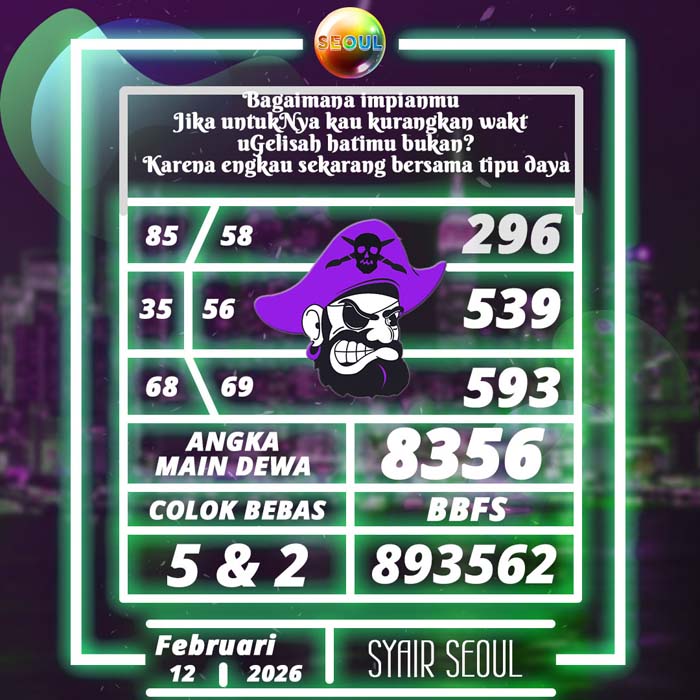 PREDIKSI TOGEL SEOUL HARI INI KAMIS 12 FEBRUARI 2026 adalah merupakan rumusan dan perhitungan ahli togel yang mempelajari semua data-data live draw SEOUL yang telah keluaran SEOUL, jitu togel prediksi mempelajari dan menyusun cara terbaik sehingga menghasilkan rumus togel jitu untuk membantu pecinta togel erek 88 agar segera mendapatkan jackpot. Untuk pecinta togel ketahu i stragegi jitu ini di rumuskan bocoran jitu karena telah kami buktikan sendiri sebelumnya sehingga prediksi yang kami berikan adalah prediksi prediksi totokita terbaik memperbesar peluang kemenangan dalam bermain toto SEOUL. PREDIKSI TOGEL SEOUL HARI INI mempelajari dan mengunakan prediksi prediksi angka togel memang memperbesar peluang jackpot syair angka, tetapi pecinta togel angka main hari ini tetap harus prediksi SEOUL 4d mengutamakan rumus togel hari ini dan firasat pecinta togel prediksi terjitu.