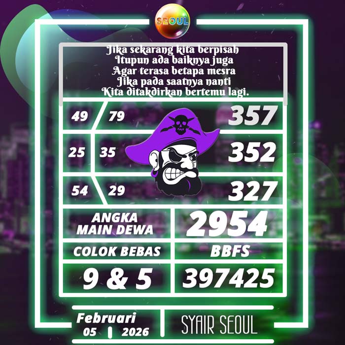 PREDIKSI TOGEL SEOUL HARI INI KAMIS 5 FEBRUARI 2026 adalah merupakan rumusan dan perhitungan ahli togel yang mempelajari semua data-data live draw SEOUL yang telah keluaran SEOUL, jitu togel prediksi mempelajari dan menyusun cara terbaik sehingga menghasilkan rumus togel jitu untuk membantu pecinta togel erek 88 agar segera mendapatkan jackpot. Untuk pecinta togel ketahu i stragegi jitu ini di rumuskan bocoran jitu karena telah kami buktikan sendiri sebelumnya sehingga prediksi yang kami berikan adalah prediksi prediksi totokita terbaik memperbesar peluang kemenangan dalam bermain toto SEOUL. PREDIKSI TOGEL SEOUL HARI INI mempelajari dan mengunakan prediksi prediksi angka togel memang memperbesar peluang jackpot syair angka, tetapi pecinta togel angka main hari ini tetap harus prediksi SEOUL 4d mengutamakan rumus togel hari ini dan firasat pecinta togel prediksi terjitu.