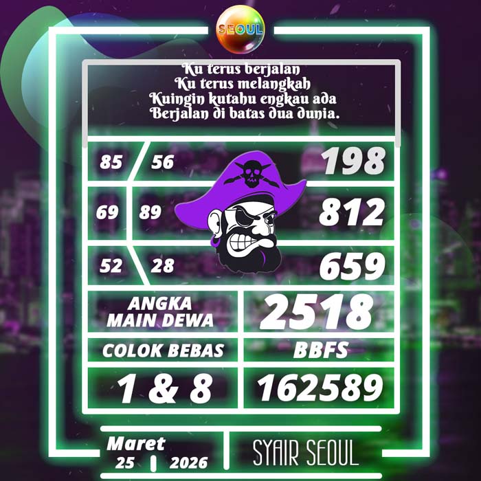 PREDIKSI TOGEL SEOUL HARI INI RABU 25 MARET 2026 adalah merupakan rumusan dan perhitungan ahli togel yang mempelajari semua data-data live draw SEOUL yang telah keluaran SEOUL, jitu togel prediksi mempelajari dan menyusun cara terbaik sehingga menghasilkan rumus togel jitu untuk membantu pecinta togel erek 88 agar segera mendapatkan jackpot. Untuk pecinta togel ketahu i stragegi jitu ini di rumuskan bocoran jitu karena telah kami buktikan sendiri sebelumnya sehingga prediksi yang kami berikan adalah prediksi prediksi totokita terbaik memperbesar peluang kemenangan dalam bermain toto SEOUL. PREDIKSI TOGEL SEOUL HARI INI mempelajari dan mengunakan prediksi prediksi angka togel memang memperbesar peluang jackpot syair angka, tetapi pecinta togel angka main hari ini tetap harus prediksi SEOUL 4d mengutamakan rumus togel hari ini dan firasat pecinta togel prediksi terjitu.