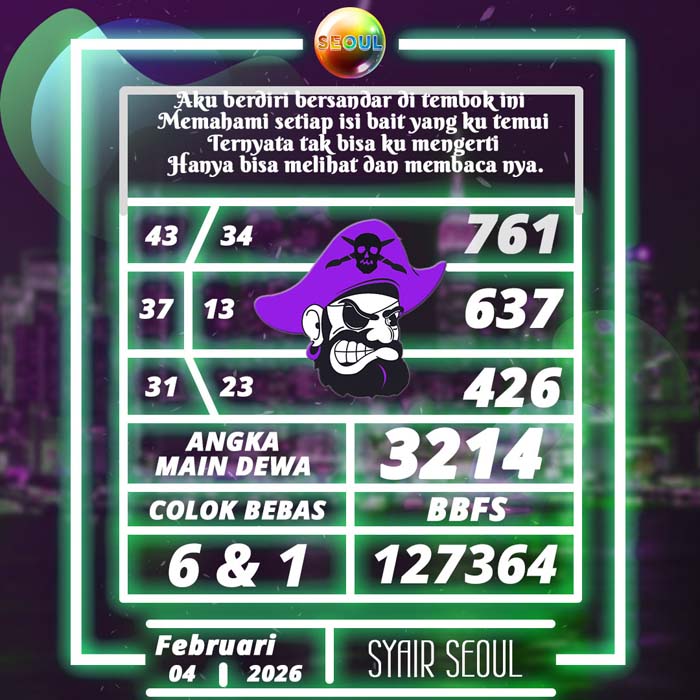 PREDIKSI TOGEL SEOUL HARI INI RABU 4 FEBRUARI 2026 adalah merupakan rumusan dan perhitungan ahli togel yang mempelajari semua data-data live draw SEOUL yang telah keluaran SEOUL, jitu togel prediksi mempelajari dan menyusun cara terbaik sehingga menghasilkan rumus togel jitu untuk membantu pecinta togel erek 88 agar segera mendapatkan jackpot. Untuk pecinta togel ketahu i stragegi jitu ini di rumuskan bocoran jitu karena telah kami buktikan sendiri sebelumnya sehingga prediksi yang kami berikan adalah prediksi prediksi totokita terbaik memperbesar peluang kemenangan dalam bermain toto SEOUL. PREDIKSI TOGEL SEOUL HARI INI mempelajari dan mengunakan prediksi prediksi angka togel memang memperbesar peluang jackpot syair angka, tetapi pecinta togel angka main hari ini tetap harus prediksi SEOUL 4d mengutamakan rumus togel hari ini dan firasat pecinta togel prediksi terjitu.