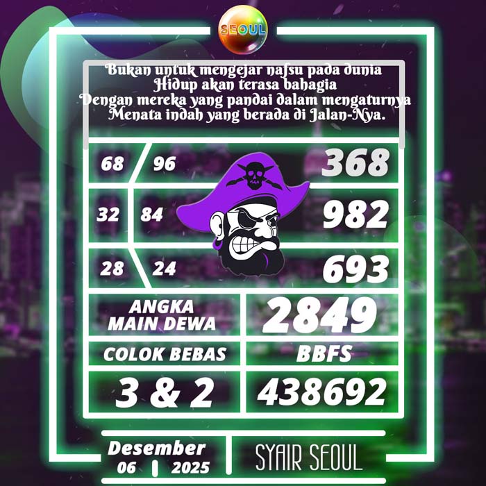 PREDIKSI TOGEL SEOUL HARI INI SABTU 6 DESEMBER 2025 adalah merupakan rumusan dan perhitungan ahli togel yang mempelajari semua data-data live draw SEOUL yang telah keluaran SEOUL, jitu togel prediksi mempelajari dan menyusun cara terbaik sehingga menghasilkan rumus togel jitu untuk membantu pecinta togel erek 88 agar segera mendapatkan jackpot. Untuk pecinta togel ketahu i stragegi jitu ini di rumuskan bocoran jitu karena telah kami buktikan sendiri sebelumnya sehingga prediksi yang kami berikan adalah prediksi prediksi totokita terbaik memperbesar peluang kemenangan dalam bermain toto SEOUL. PREDIKSI TOGEL SEOUL HARI INI mempelajari dan mengunakan prediksi prediksi angka togel memang memperbesar peluang jackpot syair angka, tetapi pecinta togel angka main hari ini tetap harus prediksi SEOUL 4d mengutamakan rumus togel hari ini dan firasat pecinta togel prediksi terjitu.
