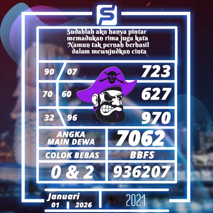 PREDIKSI TOGEL SGP HARI INI KAMIS 1 JANUARI 2026 adalah merupakan rumusan dan perhitungan ahli togel yang mempelajari semua data-data live draw SGP yang telah keluaran SGP, jitu togel prediksi mempelajari dan menyusun cara terbaik sehingga menghasilkan rumus togel jitu untuk membantu pecinta togel erek 88 agar segera mendapatkan jackpot. Untuk pecinta togel ketahu i stragegi jitu ini di rumuskan bocoran jitu karena telah kami buktikan sendiri sebelumnya sehingga prediksi yang kami berikan adalah prediksi prediksi totokita terbaik memperbesar peluang kemenangan dalam bermain toto SGP. PREDIKSI TOGEL SGP HARI INI mempelajari dan mengunakan prediksi prediksi angka togel memang memperbesar peluang jackpot syair angka, tetapi pecinta togel angka main hari ini tetap harus prediksi SGP 4d mengutamakan rumus togel hari ini dan firasat pecinta togel prediksi terjitu.