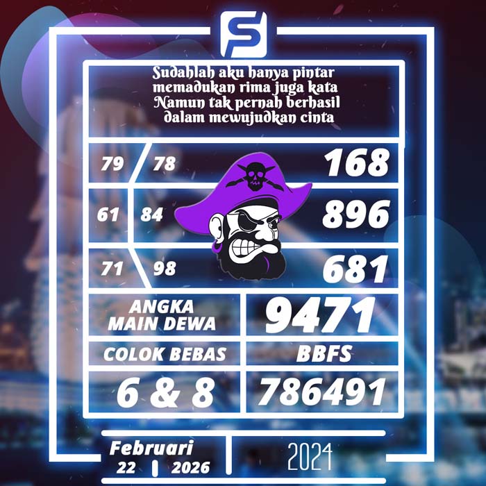 PREDIKSI TOGEL SGP HARI INI MINGGU 22 FEBRUARI 2026 adalah merupakan rumusan dan perhitungan ahli togel yang mempelajari semua data-data live draw SGP yang telah keluaran SGP, jitu togel prediksi mempelajari dan menyusun cara terbaik sehingga menghasilkan rumus togel jitu untuk membantu pecinta togel erek 88 agar segera mendapatkan jackpot. Untuk pecinta togel ketahu i stragegi jitu ini di rumuskan bocoran jitu karena telah kami buktikan sendiri sebelumnya sehingga prediksi yang kami berikan adalah prediksi prediksi totokita terbaik memperbesar peluang kemenangan dalam bermain toto SGP. PREDIKSI TOGEL SGP HARI INI mempelajari dan mengunakan prediksi prediksi angka togel memang memperbesar peluang jackpot syair angka, tetapi pecinta togel angka main hari ini tetap harus prediksi SGP 4d mengutamakan rumus togel hari ini dan firasat pecinta togel prediksi terjitu.