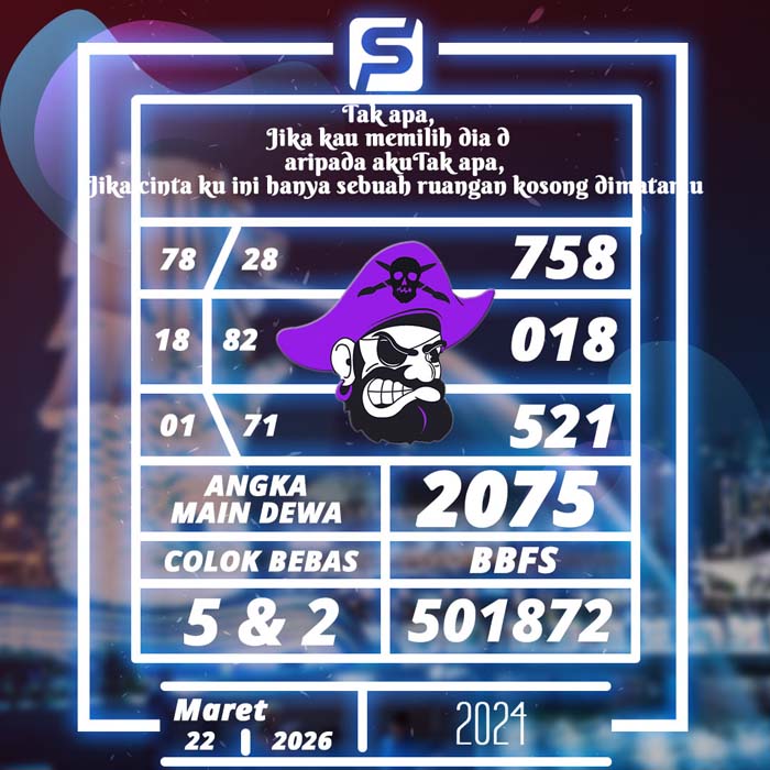PREDIKSI TOGEL SGP HARI INI MINGGU 22 MARET 2026 adalah merupakan rumusan dan perhitungan ahli togel yang mempelajari semua data-data live draw SGP yang telah keluaran SGP, jitu togel prediksi mempelajari dan menyusun cara terbaik sehingga menghasilkan rumus togel jitu untuk membantu pecinta togel erek 88 agar segera mendapatkan jackpot. Untuk pecinta togel ketahu i stragegi jitu ini di rumuskan bocoran jitu karena telah kami buktikan sendiri sebelumnya sehingga prediksi yang kami berikan adalah prediksi prediksi totokita terbaik memperbesar peluang kemenangan dalam bermain toto SGP. PREDIKSI TOGEL SGP HARI INI mempelajari dan mengunakan prediksi prediksi angka togel memang memperbesar peluang jackpot syair angka, tetapi pecinta togel angka main hari ini tetap harus prediksi SGP 4d mengutamakan rumus togel hari ini dan firasat pecinta togel prediksi terjitu.