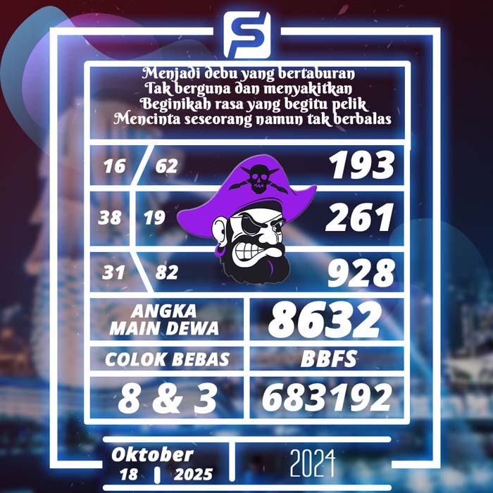 PREDIKSI TOGEL SGP HARI INI SABTU 18 OKTOBER 2025 adalah merupakan rumusan dan perhitungan ahli togel yang mempelajari semua data-data live draw SGP yang telah keluaran SGP, jitu togel prediksi mempelajari dan menyusun cara terbaik sehingga menghasilkan rumus togel jitu untuk membantu pecinta togel erek 88 agar segera mendapatkan jackpot. Untuk pecinta togel ketahu i stragegi jitu ini di rumuskan bocoran jitu karena telah kami buktikan sendiri sebelumnya sehingga prediksi yang kami berikan adalah prediksi prediksi totokita terbaik memperbesar peluang kemenangan dalam bermain toto SGP. PREDIKSI TOGEL SGP HARI INI mempelajari dan mengunakan prediksi prediksi angka togel memang memperbesar peluang jackpot syair angka, tetapi pecinta togel angka main hari ini tetap harus prediksi SGP 4d mengutamakan rumus togel hari ini dan firasat pecinta togel prediksi terjitu.