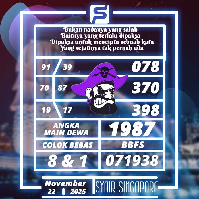 PREDIKSI TOGEL SGP HARI INI SABTU 22 NOVEMBER 2025 adalah merupakan rumusan dan perhitungan ahli togel yang mempelajari semua data-data live draw SGP yang telah keluaran SGP, jitu togel prediksi mempelajari dan menyusun cara terbaik sehingga menghasilkan rumus togel jitu untuk membantu pecinta togel erek 88 agar segera mendapatkan jackpot. Untuk pecinta togel ketahu i stragegi jitu ini di rumuskan bocoran jitu karena telah kami buktikan sendiri sebelumnya sehingga prediksi yang kami berikan adalah prediksi prediksi totokita terbaik memperbesar peluang kemenangan dalam bermain toto SGP. PREDIKSI TOGEL SGP HARI INI mempelajari dan mengunakan prediksi prediksi angka togel memang memperbesar peluang jackpot syair angka, tetapi pecinta togel angka main hari ini tetap harus prediksi SGP 4d mengutamakan rumus togel hari ini dan firasat pecinta togel prediksi terjitu.