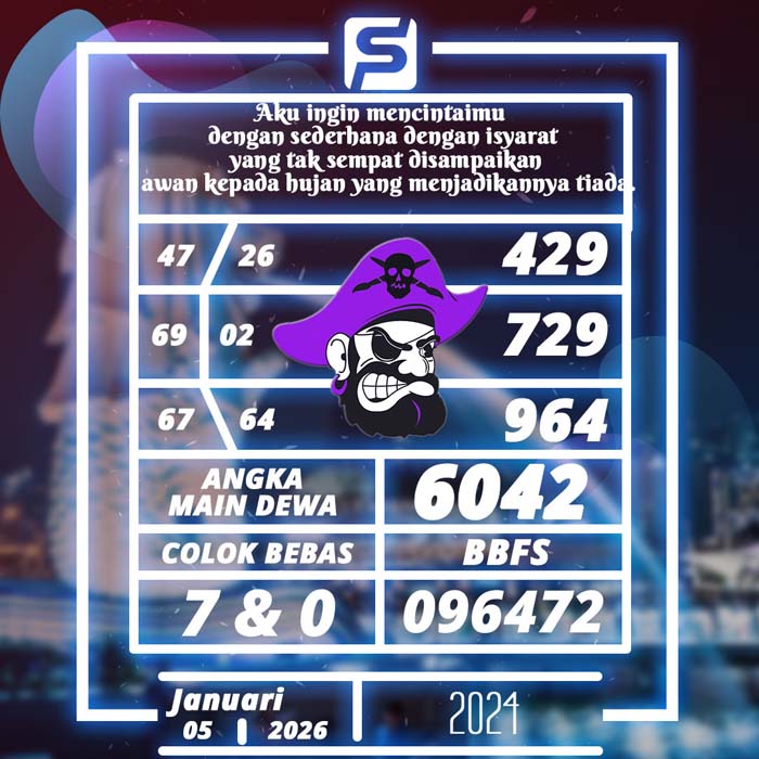 PREDIKSI TOGEL SGP HARI INI SENIN 5 JANUARI 2026 adalah merupakan rumusan dan perhitungan ahli togel yang mempelajari semua data-data live draw SGP yang telah keluaran SGP, jitu togel prediksi mempelajari dan menyusun cara terbaik sehingga menghasilkan rumus togel jitu untuk membantu pecinta togel erek 88 agar segera mendapatkan jackpot. Untuk pecinta togel ketahu i stragegi jitu ini di rumuskan bocoran jitu karena telah kami buktikan sendiri sebelumnya sehingga prediksi yang kami berikan adalah prediksi prediksi totokita terbaik memperbesar peluang kemenangan dalam bermain toto SGP. PREDIKSI TOGEL SGP HARI INI mempelajari dan mengunakan prediksi prediksi angka togel memang memperbesar peluang jackpot syair angka, tetapi pecinta togel angka main hari ini tetap harus prediksi SGP 4d mengutamakan rumus togel hari ini dan firasat pecinta togel prediksi terjitu.