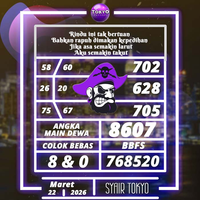 PREDIKSI TOGEL TOKYO HARI INI MINGGU 22 MARET 2026 adalah merupakan rumusan dan perhitungan ahli togel yang mempelajari semua data-data live draw TOKYO yang telah keluaran TOKYO, jitu togel prediksi mempelajari dan menyusun cara terbaik sehingga menghasilkan rumus togel jitu untuk membantu pecinta togel erek 88 agar segera mendapatkan jackpot. Untuk pecinta togel ketahu i stragegi jitu ini di rumuskan bocoran jitu karena telah kami buktikan sendiri sebelumnya sehingga prediksi yang kami berikan adalah prediksi prediksi totokita terbaik memperbesar peluang kemenangan dalam bermain toto TOKYO. PREDIKSI TOGEL TOKYO HARI INI mempelajari dan mengunakan prediksi prediksi angka togel memang memperbesar peluang jackpot syair angka, tetapi pecinta togel angka main hari ini tetap harus prediksi TOKYO 4d mengutamakan rumus togel hari ini dan firasat pecinta togel prediksi terjitu.