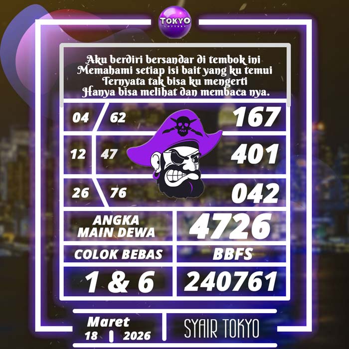 PREDIKSI TOGEL TOKYO HARI INI RABU 18 MARET 2026 adalah merupakan rumusan dan perhitungan ahli togel yang mempelajari semua data-data live draw TOKYO yang telah keluaran TOKYO, jitu togel prediksi mempelajari dan menyusun cara terbaik sehingga menghasilkan rumus togel jitu untuk membantu pecinta togel erek 88 agar segera mendapatkan jackpot. Untuk pecinta togel ketahu i stragegi jitu ini di rumuskan bocoran jitu karena telah kami buktikan sendiri sebelumnya sehingga prediksi yang kami berikan adalah prediksi prediksi totokita terbaik memperbesar peluang kemenangan dalam bermain toto TOKYO. PREDIKSI TOGEL TOKYO HARI INI mempelajari dan mengunakan prediksi prediksi angka togel memang memperbesar peluang jackpot syair angka, tetapi pecinta togel angka main hari ini tetap harus prediksi TOKYO 4d mengutamakan rumus togel hari ini dan firasat pecinta togel prediksi terjitu.
