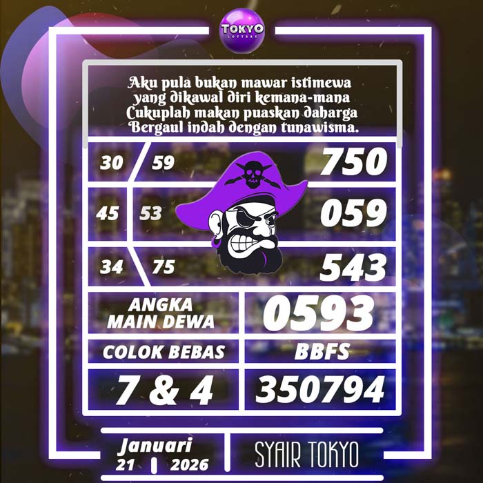 PREDIKSI TOGEL TOKYO HARI INI RABU 21 JANUARI 2026 adalah merupakan rumusan dan perhitungan ahli togel yang mempelajari semua data-data live draw TOKYO yang telah keluaran TOKYO, jitu togel prediksi mempelajari dan menyusun cara terbaik sehingga menghasilkan rumus togel jitu untuk membantu pecinta togel erek 88 agar segera mendapatkan jackpot. Untuk pecinta togel ketahu i stragegi jitu ini di rumuskan bocoran jitu karena telah kami buktikan sendiri sebelumnya sehingga prediksi yang kami berikan adalah prediksi prediksi totokita terbaik memperbesar peluang kemenangan dalam bermain toto TOKYO. PREDIKSI TOGEL TOKYO HARI INI mempelajari dan mengunakan prediksi prediksi angka togel memang memperbesar peluang jackpot syair angka, tetapi pecinta togel angka main hari ini tetap harus prediksi TOKYO 4d mengutamakan rumus togel hari ini dan firasat pecinta togel prediksi terjitu.