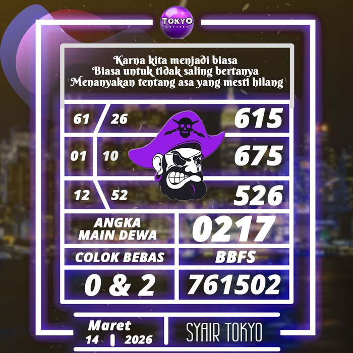 PREDIKSI TOGEL TOKYO HARI INI SABTU 14 MARET 2026 adalah merupakan rumusan dan perhitungan ahli togel yang mempelajari semua data-data live draw TOKYO yang telah keluaran TOKYO, jitu togel prediksi mempelajari dan menyusun cara terbaik sehingga menghasilkan rumus togel jitu untuk membantu pecinta togel erek 88 agar segera mendapatkan jackpot. Untuk pecinta togel ketahu i stragegi jitu ini di rumuskan bocoran jitu karena telah kami buktikan sendiri sebelumnya sehingga prediksi yang kami berikan adalah prediksi prediksi totokita terbaik memperbesar peluang kemenangan dalam bermain toto TOKYO. PREDIKSI TOGEL TOKYO HARI INI mempelajari dan mengunakan prediksi prediksi angka togel memang memperbesar peluang jackpot syair angka, tetapi pecinta togel angka main hari ini tetap harus prediksi TOKYO 4d mengutamakan rumus togel hari ini dan firasat pecinta togel prediksi terjitu.
