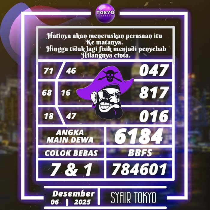 PREDIKSI TOGEL TOKYO HARI INI SABTU 6 DESEMBER 2025 adalah merupakan rumusan dan perhitungan ahli togel yang mempelajari semua data-data live draw TOKYO yang telah keluaran TOKYO, jitu togel prediksi mempelajari dan menyusun cara terbaik sehingga menghasilkan rumus togel jitu untuk membantu pecinta togel erek 88 agar segera mendapatkan jackpot. Untuk pecinta togel ketahu i stragegi jitu ini di rumuskan bocoran jitu karena telah kami buktikan sendiri sebelumnya sehingga prediksi yang kami berikan adalah prediksi prediksi totokita terbaik memperbesar peluang kemenangan dalam bermain toto TOKYO. PREDIKSI TOGEL TOKYO HARI INI mempelajari dan mengunakan prediksi prediksi angka togel memang memperbesar peluang jackpot syair angka, tetapi pecinta togel angka main hari ini tetap harus prediksi TOKYO 4d mengutamakan rumus togel hari ini dan firasat pecinta togel prediksi terjitu.