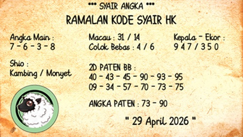 SYAIR PREDIKSI KELUARAN HK, 29-Apr-2026